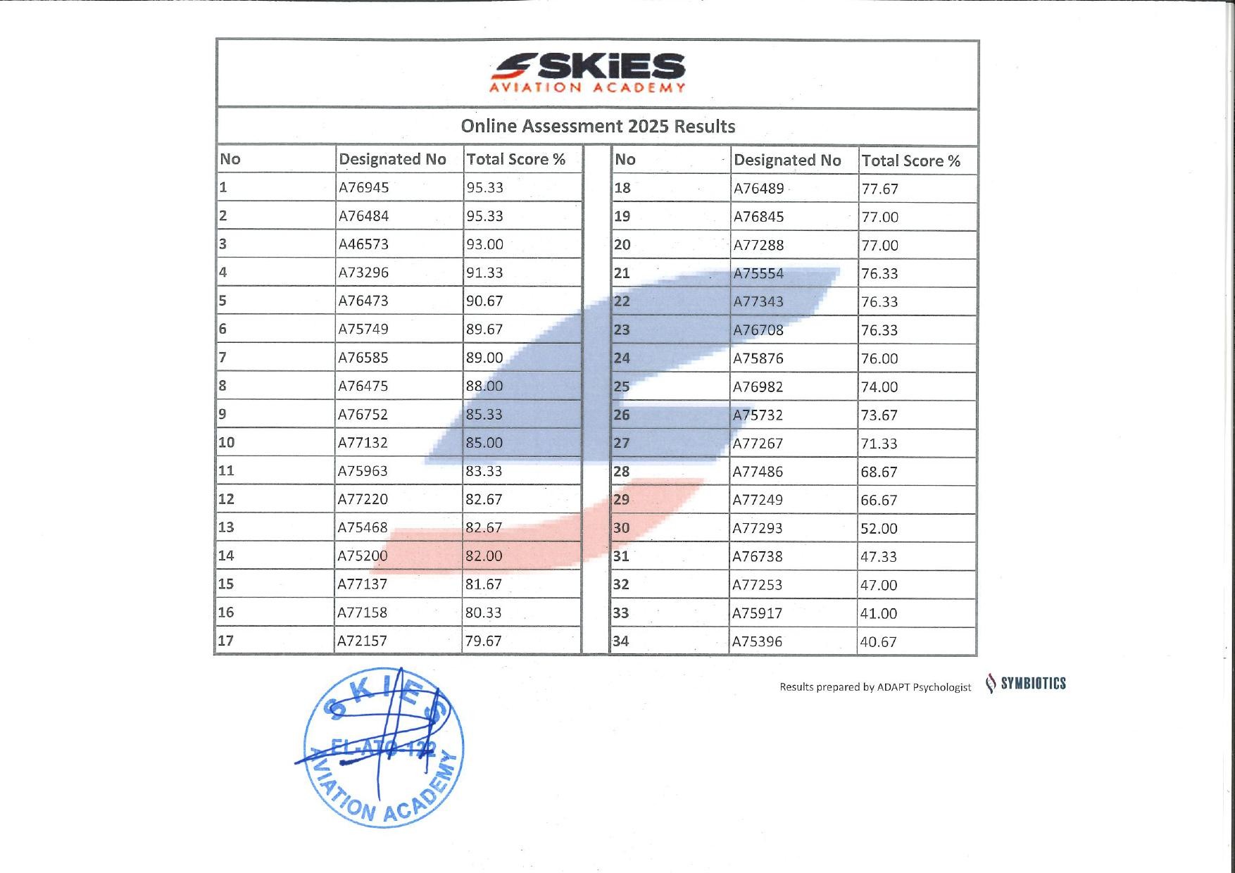 We are thrilled to announce the winners of the Skies Aviation Academy Scholarship Program! Dear participants, please check your online assessment results using the unique number assigned to you.